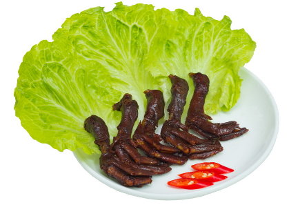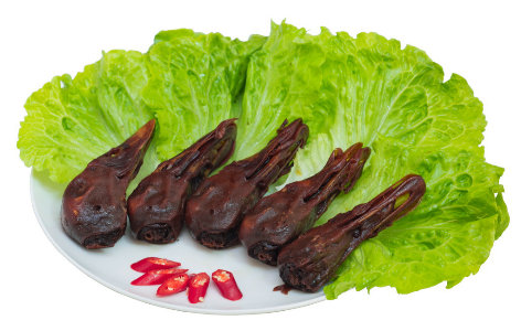 • 將鴨頭以醬汁鹵煮,讓醬料味道進入食材。