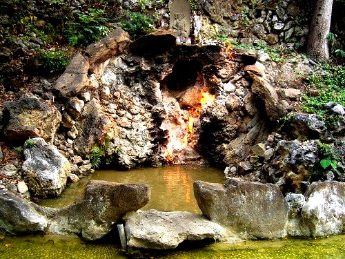 水火同源 水火同源,又名水火洞、水火河,是一處水與火共存的自然景色,位於白河關子嶺風景區,枕頭山麓西南側,六重溪斷層附近上脊斜軸部上的石壁。壁上冒出的天然氣可使點燃的火焰不熄滅,同時又有泉水從崖壁細縫中潺潺流出,火噴其間,無煙亦無燄,形成水中有火,火中有水的特別景觀 |